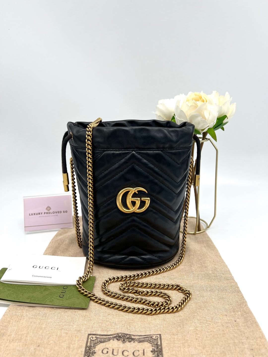 GUCCI MARMONT QUILTED GHW BUCKET BAG