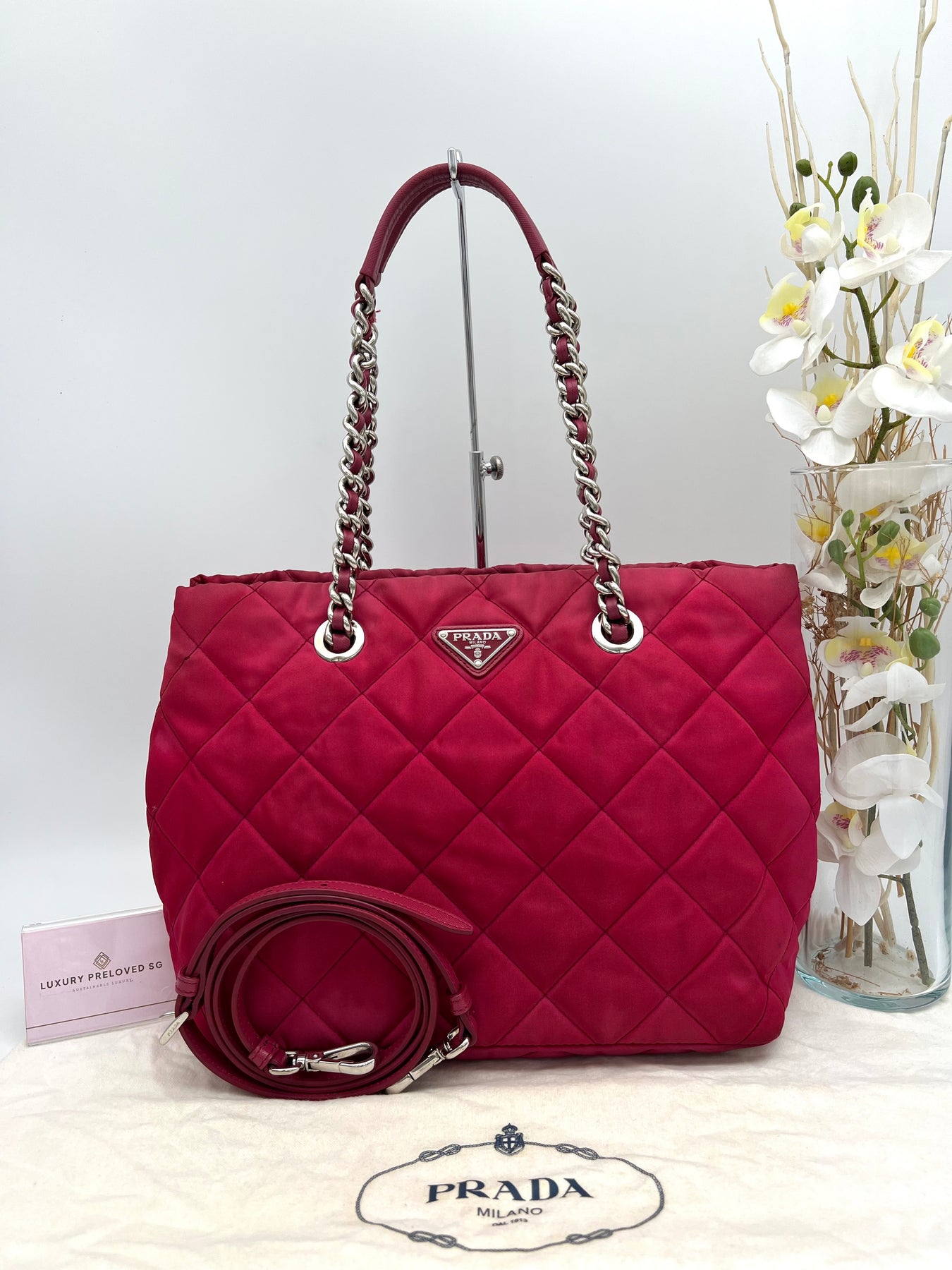 PRADA QUILTED TESSUTO CHAIN SHOULDER BAG